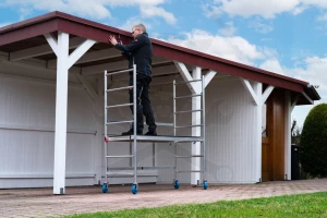 Kompakt alumínium gurulós szerelőállvány, a lehető legbiztonságosabb innovatív kialakítással felszerelve, a mindennapok kényelmes használata érdekében.