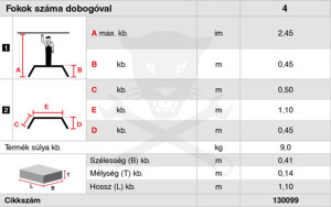 Összecsukva: 1100x335x135 mm