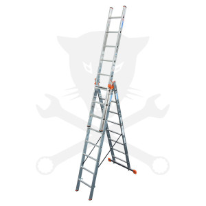 Háromrészes alumínium sokcélú létra, amely támasztó-, toló- és állólétraként is használható a kitolható létrarésszel.