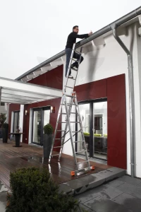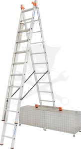 - Háromrészes alumínium sokcélú létra, amely támasztó-, toló- és állólétraként is használható a kitolható létrarésszel.