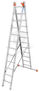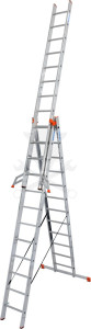 Háromrészes alumínium sokcélú létra, amely támasztó-, toló- és állólétraként is használható a kitolható létrarésszel