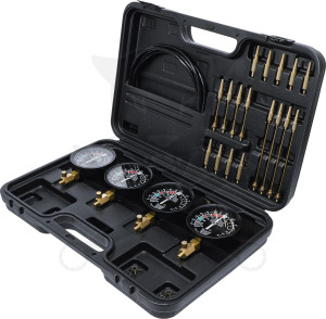 4 db szinkronizáló órával szerelt karburátor vizsgáló, szinkronizáló és beállító 26 db-os készlet.