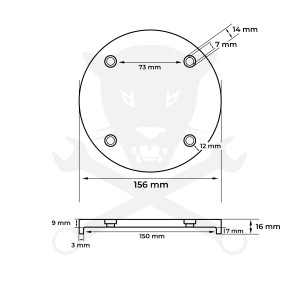 Külső átmérő: 156 mm (körkörös-ábra a felső oldalon + 4 db csavarhely kiképzés)