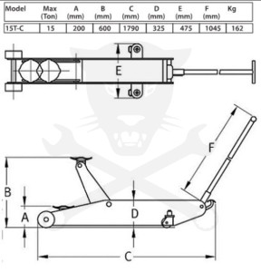 Csúcsminőségű, kézi emelőkarral és lábpedállal szerelt alacsony építésű, extra nagy 15 tonnás modell.
