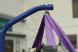 Ezt úgy éri el, hogy egy hagyományos függőleges sebességváltó-emeléshez csatlakozik, és egy speciálisan kialakított kart biztosít, amely a sebességváltó oldalán felfelé megy, hogy rögzítési pontot biztosítson a mellékelt tartópánt és láncok felakasztásához.