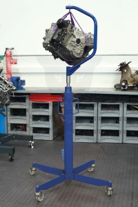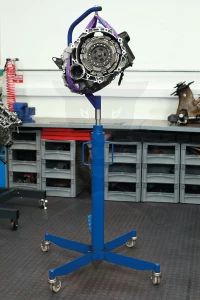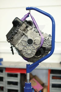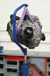 Hagyományos sebességváltó-emelővel kombinálva ez a szabadalmaztatott eszköz leegyszerűsíti a sebességváltó ki- és beszerelését azáltal, hogy felülről támasztja meg a sebességváltót.