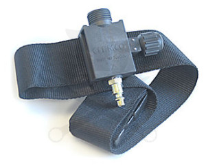 Apollo 600-as sisakhoz tartalék speciális kialakítású légző levegő szabályozó szelep övvel és övcsattal együtt szállítva.