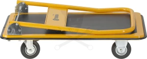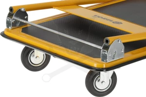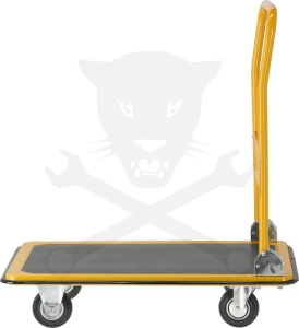 Minőségi platós kiskocsi összecsukható fogantyúval, 300kg terhelhetőséggel alkalmas üzletekben, raktári kiskocsinak és számtalan célra.