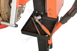 - A forgató állványon szerszámok tárolására kialakított négyszögletű fém tálca