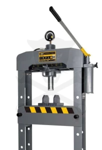 Professzionális kialakítású 30 tonnás állványos hidraulikus műhely présgép.