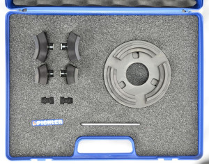 Kerékcsapágyak ki- és bepréseléséhez alkalmazható univerzális csonkállvány alátámasztó.