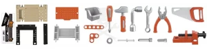 A készlet a NEO professzionális szerszámokat utánzó, de gyerekeknek szánt elemeket tartalmaz, többek között fűrészt, kalapácsot vagy fogót.