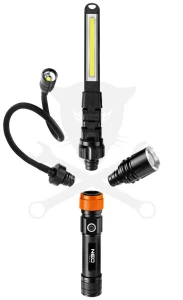 A 3 az 1-ben lámpa, 99-107 NEO TOOLS cserélhető fejjel egy sokoldalú világítóeszköz, amely a legigényesebb felhasználók igényeit is kielégíti.