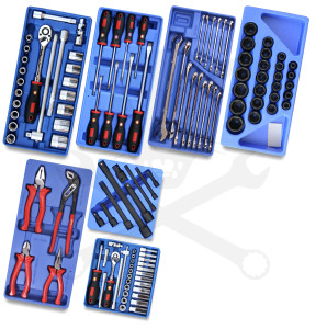 15 db-os metrikus készlet kék műanyag tartórekeszben: