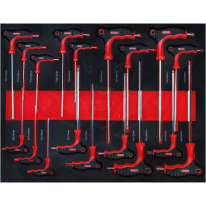 - Csavarhúzó T-fogantyúval és oldalsó pengével, 18 darabos