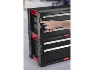 - Mély fiókkal és kivehető válaszfalakkal nagyobb és nehezebb szerszámok tárolására.