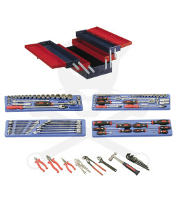 Harmónika kialakítású hordozható, profi szerszámos láda 110 db Genius szerszámmal együtt.