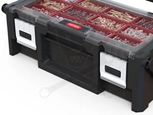 - 2 szintes kialakítás, felül 12 kisebb, alul pedig 6 nagyobb rekesszel, amelyek eltávolíthatók a nagyobb szerszámok, alkatrészek tárolása érdekében.