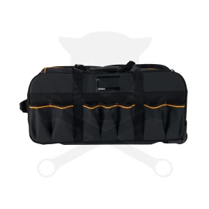 Tárolásra ez a legnagyobb megoldásunk, amelyet több elektromos szerszám, kéziszerszám és tartozék tárolására alkalmas, puha anyagból alakítottunk ki, és amely kihúzható fogantyúval, tartós kerekekkel, valamint ergonomikus hordpánttal és fogantyúval rendelkezik.