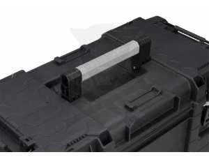 - Mobil 28"-os szerszámosláda teleszkópos fogantyúval, 2 kerékkel a könnyű mozgatáshoz a terepen.