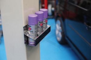 Három flakonos kialakítású mágneses tartó hogy a festékek, féktisztítók kéznél legyenek