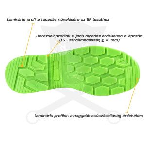 - Átszúrás elleni talp: ultrakönnyű textilszálból (PS - 3 mm-es átmérőjű szög)