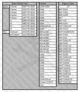 BMW B47 / N47 / B48 motorok 1, 2, 3, 4 & 5 sorozat, X1, X3, X4, X5, Mini Clubman, Mini Hatch