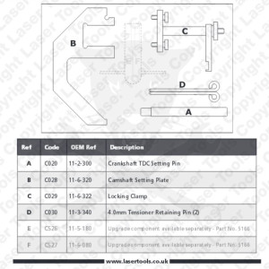 A készlet tartalmazza a megfelelő pozícionáló szerszámokat a BMW M47-M57-es 2.0 L 16 V motorok szerelésénél
