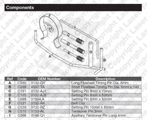 Vezérműszíj szerelő készlet, mely tartalmazza az összes olyan speciális összetevőket mellyel a motor főbb alkatrészei beállításához és időzítéséhez szükségesek.